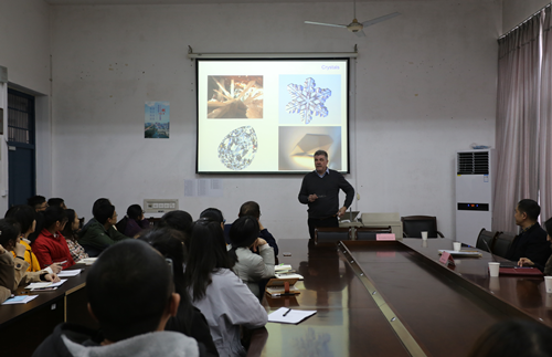 当天下午,Ian Jonathan Scowen还为学院师生做了题为《Solid State Chemistry》的学术报告。他向在场师生介绍了林肯大学的概况,并根据自己在有机固体功能材料领域的相关研究,介绍了固态化学的主要研究内容与研究意义。与会师生还与Ian Scowen教授进行了交流互动。