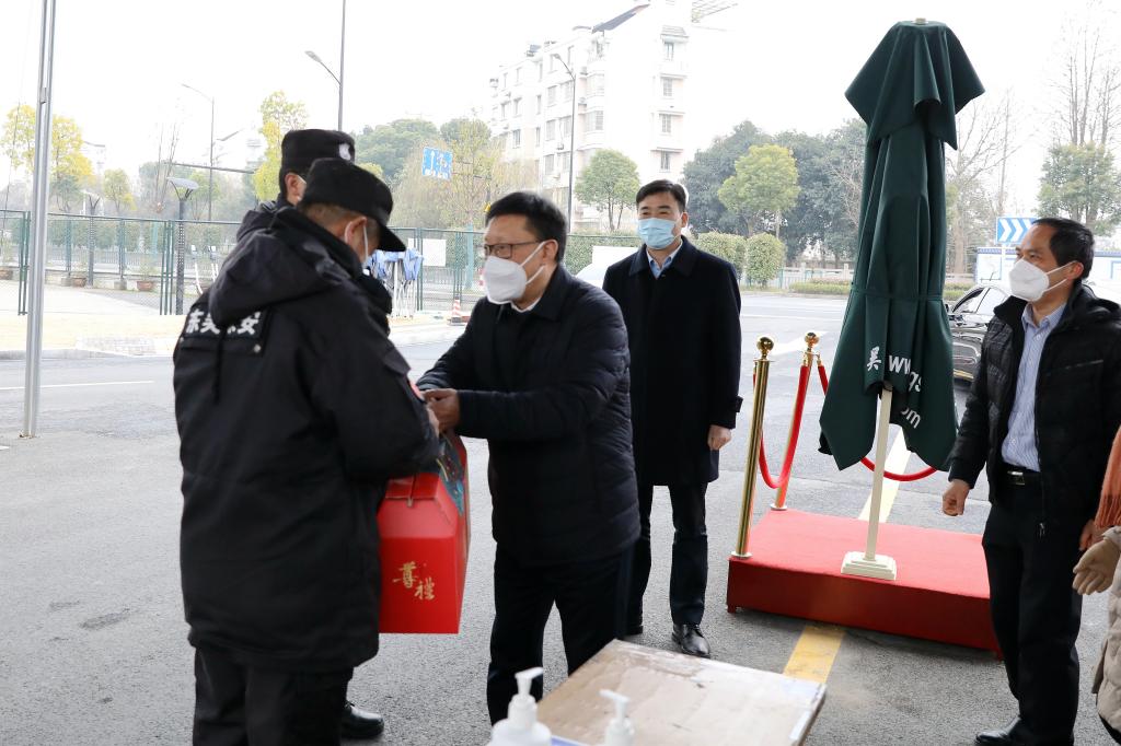 汪俊昌一行先后来到学校总值班室、河西配电房、河西校区南大门、南山校区大门、阳明书院、附属医院、兰亭校区、上虞分院、元培学院,亲切慰问了寒假期间依然坚守岗位的教职工,致以诚挚的问候并代表学校党委和行政送上了新春祝福和慰问品。