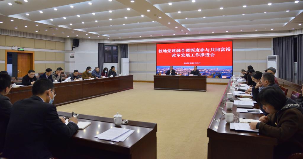 12月8日下午,学校在图书馆一楼报告厅召开校地党建融合暨深度参与共同富裕改革发展工作推进会。校党委副书记沈赤,校党委委员、组织部部长宣绍龙,相关职能部门负责人和全体二级党组织书记参加会议,会议由宣绍龙主持。