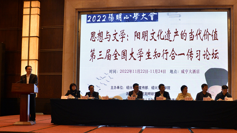 11月23日下午,以“阳明心学与共同富裕”为主题的世界阳明学大会——2022阳明心学大会在我市举行,校党委书记汪俊昌出席大会开幕式。大会期间,绍兴市委宣传部、我校和浙江省稽山王阳明研究院主办“思想与文学:阳明文化的当代价值——第三届全国大学生知行合一传习论坛”,论坛由我校人文学院、越文化研究院和人文社科处承办。
