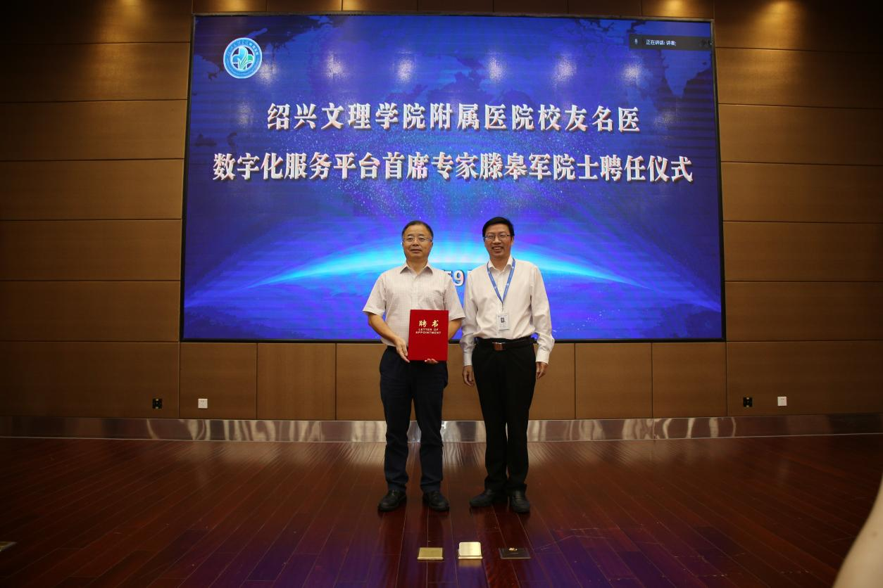 滕皋军院士受聘为校友名医数字化服务平台首席专家。他表示,校友名医数字化服务平台的建立旨在打造绍兴医学高地,发展绍兴卫生健康事业,也为校友实现感恩母校、服务母校的愿望提供了机会。他将积极参加平台组织的活动,加强学术交流,为母校的发展,为家乡的卫生健康事业作出更多贡献。