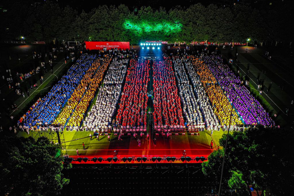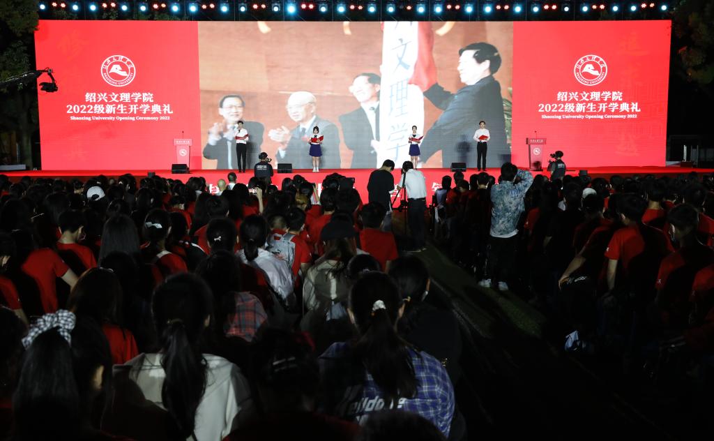 9月15日晚,我校在河东田径场举行2022级新生开学典礼。典礼以“迎接党的二十大,培根铸魂育新人”为主题,引导新生努力实践“修德求真 追求卓越”的文理精神。校领导汪俊昌、赵阳、张宏、寿永明、柳国庆、柯羽、黄坚、陈均土,校党委委员宣绍龙、郭航远、梁瑜,各二级学院、职能部处、直属单位负责人,全体新生班班主任、辅导员参加典礼。典礼以现场和网络直播结合的方式举行,邀请了学生家长通过网络直播观看。