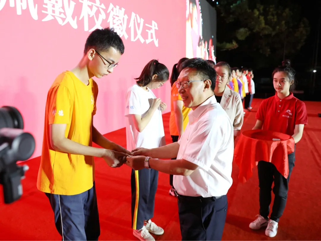 汪俊昌为新生代表佩戴校徽
