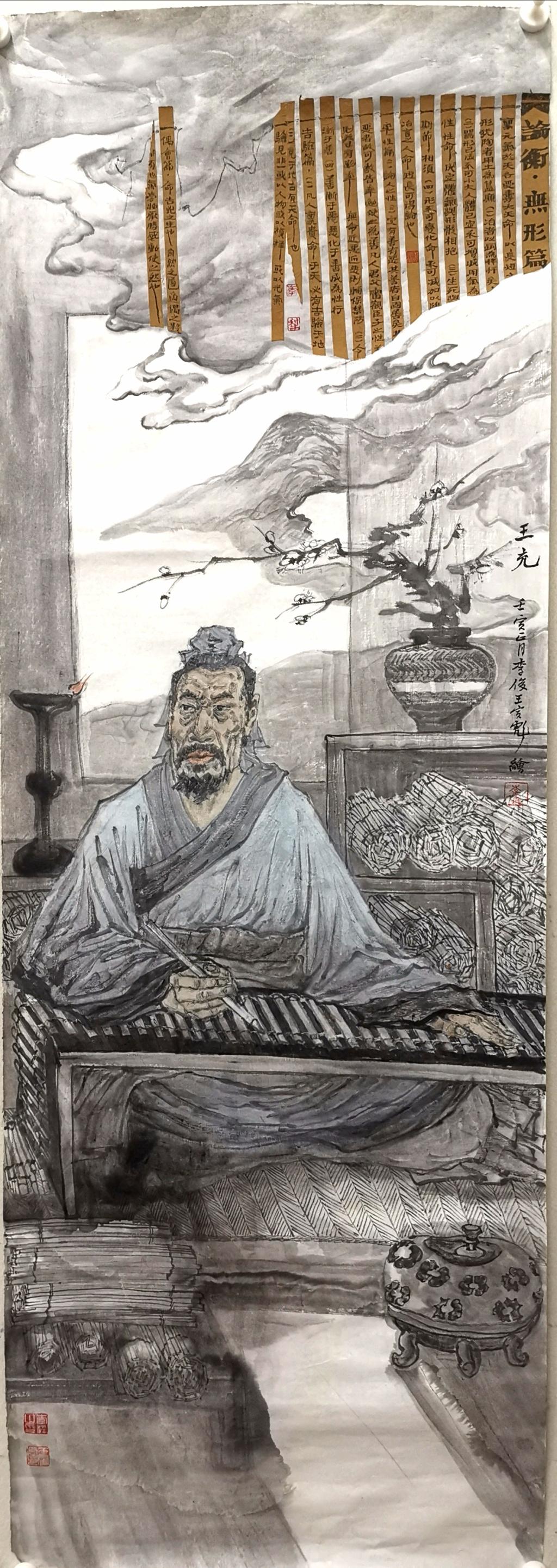 近日,由艺术学院李俊教授和其研究生王寅彪共同创作的中国画作品《王充》,被杭州国家版本馆永久收藏。