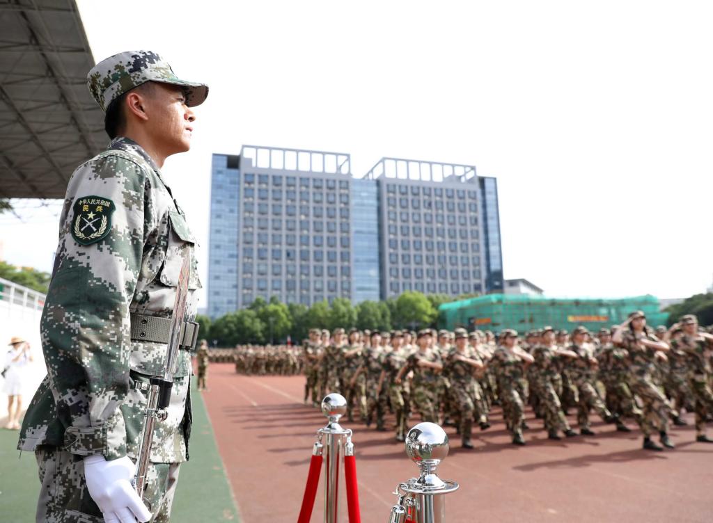 军训团副团长杨锦组织分列式。70个连队进行了精彩的分列式表演,参训学员精神饱满、迈着整齐统一的步伐集中展示了10天的训练成果。