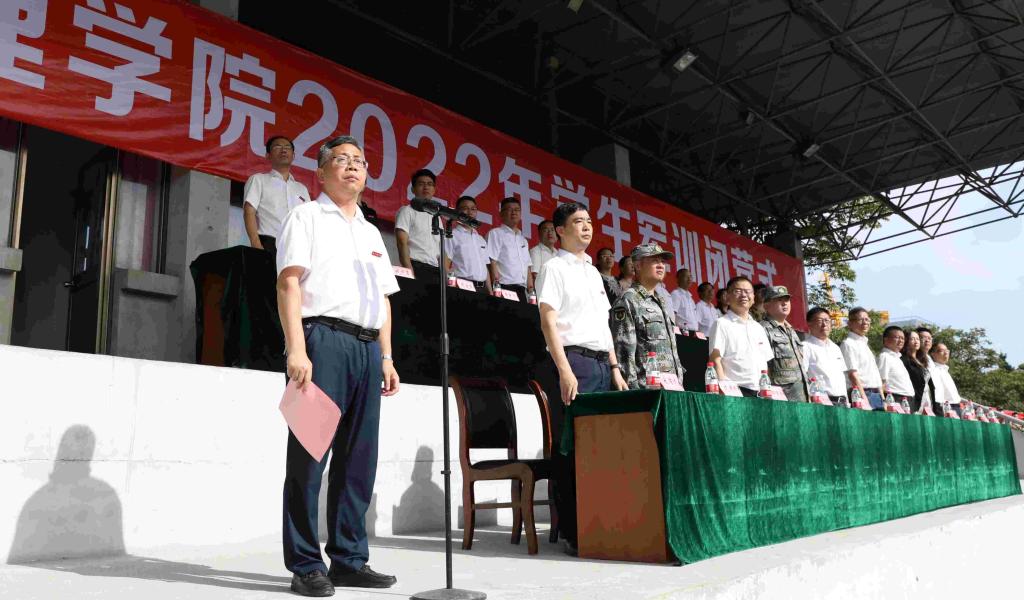 6月30日上午,我校在南山校区田径场举行2022年学生军训闭营仪式。绍兴军分区战备建设处处长、军训团团长汪震上校,越城区人武部副部长、军训团副团长边建刚中校,校党委书记汪俊昌,校长王建力,校领导班子其他成员沈赤、寿永明、柳国庆、柯羽、陈均土、宣绍龙,校党委学工部、人武部部长、军训团参谋长宋浩成,校军训领导小组全体成员,全体承训教官、参训学生参加闭营式。副校长柳国庆主持仪式。