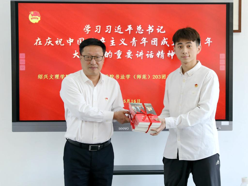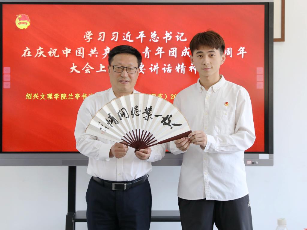 5月16日,兰亭书法艺术学院书法学(师范)203班团支部举行学习习近平总书记在庆祝中国共产主义青年团成立100周年大会上的重要讲话精神主题团日活动,校党委书记汪俊昌、党委副书记张宏深入班级团支部,与团员青年亲切交流。校团委、兰亭书法艺术学院相关负责人、教师代表等参加活动。