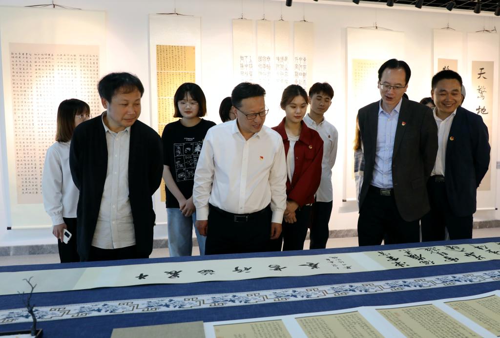 汪俊昌与书法203班同学互赠礼物,汪俊昌一行还参观了兰亭书法艺术学院2022届毕业生毕业作品展。