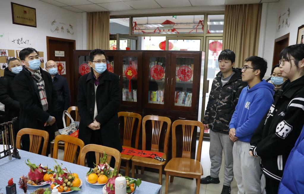 1月29日,农历腊月廿七,校长王建力走进公寓和书院,向在校过年的研究生、本科生和国际留学生送上慰问品和新春祝福,共迎壬寅年的到来。党办、校办、学工部、研究生工作部、国际教育学院等部门负责人陪同慰问。