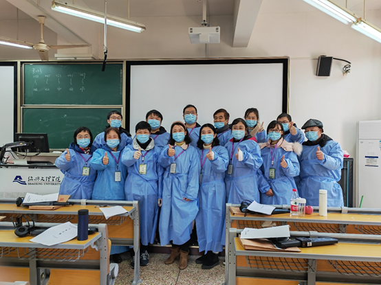 据悉,本次大学外语等级考试上下午一共开设286个考场,备用应急考场10个。370名教职工参与监考与考务工作,面对疫情防控要求下监考人员不足的难题,二级学院主要负责人等在内的57名中层干部响应号召,来到考场一线参加监考工作。面对严峻的疫情,全校教职工齐心聚力,中层干部勇于担当,党员做到“组织有号召,党员有回应”,各条线积极参与考试工作。