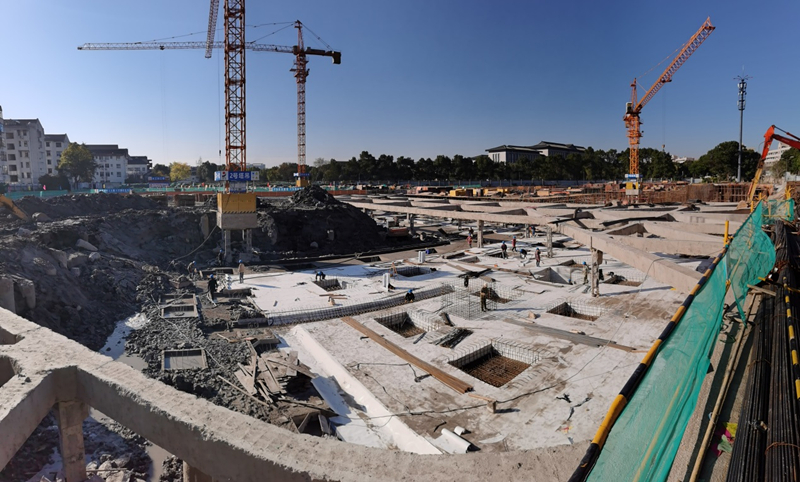 根据拆迁进度和校园腾挪周转需要,二期工程分为五个标段建设。今年4月,二期一标开工建设,施工总承包单位浙江省二建建设集团,项目总投资2.53亿元,总建筑面积约4.61万平方米,计划工期609天。建设内容为国际教育组团,主要包括青年教师公寓、留学生宿舍、教学用房及后勤配套用房等。目前,土方开挖完成至88%,地下室主体结构完成至50%。