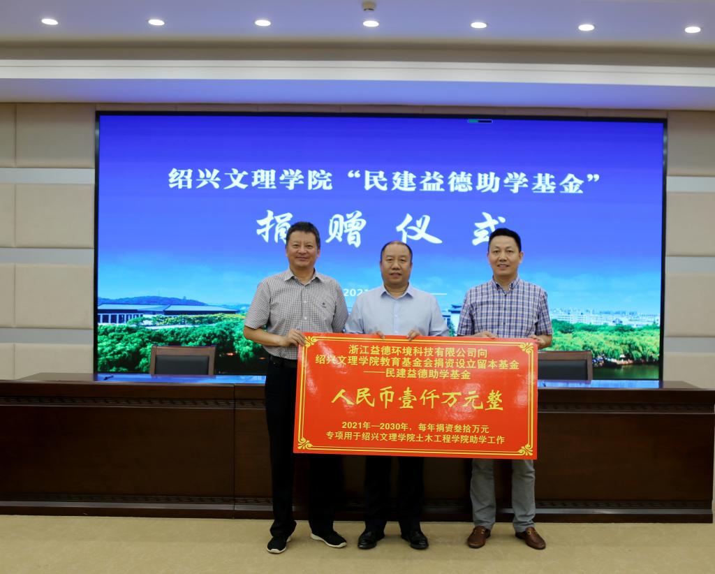 据悉,“民建益德助学基金”是在民建绍兴市委的大力推动下,市慈善总会的全力支持下,由浙江益德环境通过绍兴市慈善总会捐赠给我校的留本基金,规模为人民币1000万元,计划2021年至2030年的10年间,每年捐资30万元定向支持土木工程学院家庭经济困难学生、优秀学生和相关体育运动项目开展。