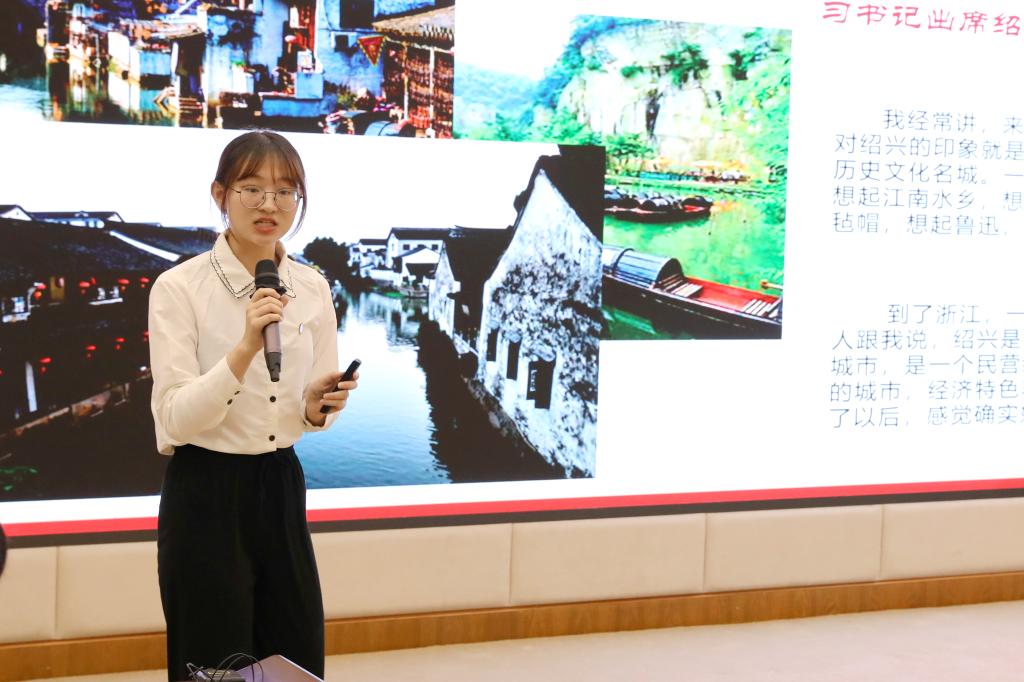 我校“越讲越响”教授博士宣讲团成员肖会舜博士和“越讲越红”大学生宣讲团成员孙袁、王玉瑶同学,分别以“共同富裕‘浙’里有模有样”“山海协作,奏响浙江共同富裕幸福歌”“‘浙’样干,我看‘兴’”为题宣讲,拉开了覆盖全市的青年宣讲活动序幕。