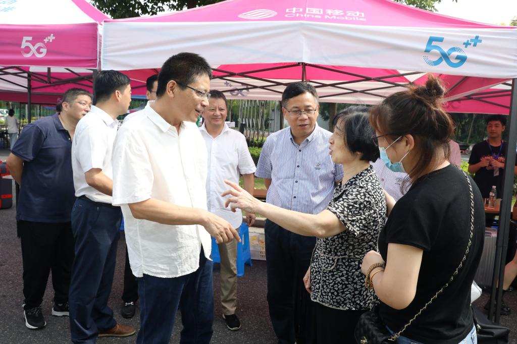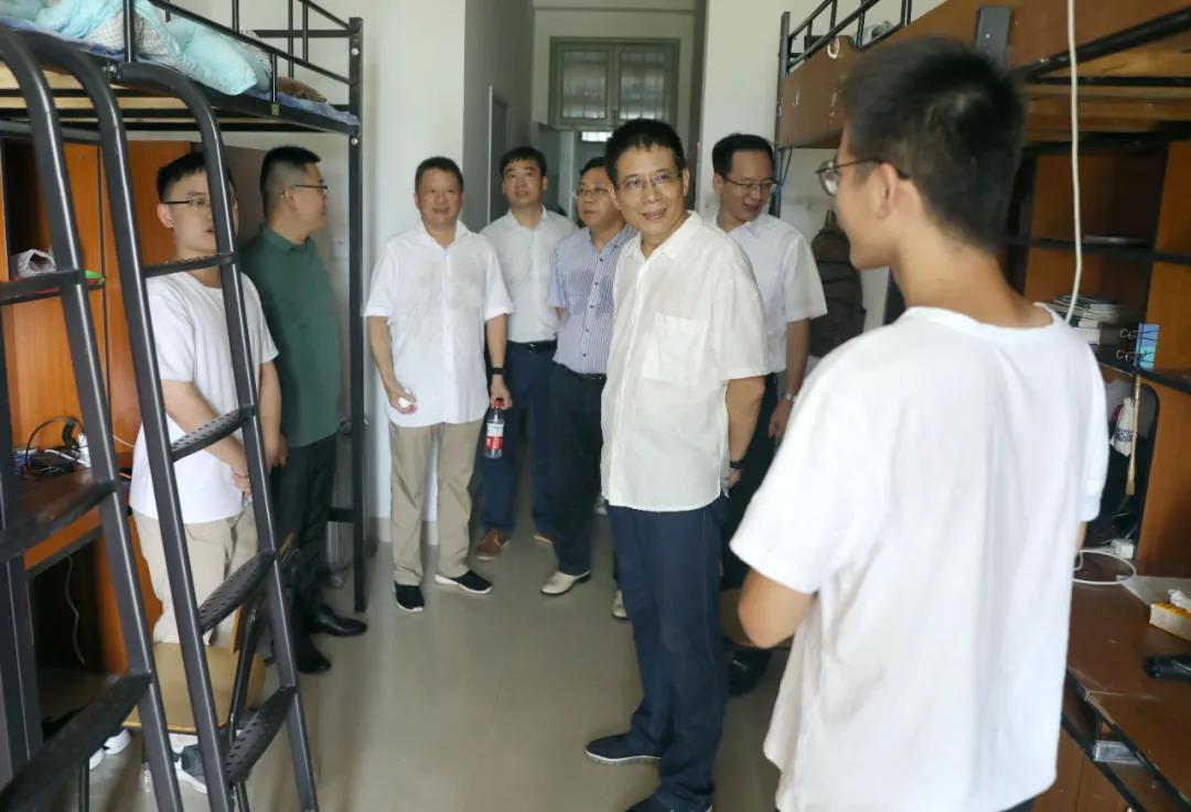 9月5日上午,王建力一行走访了河西体育馆前集中接待点、河西青藤书院、竞雄书院、河西餐厅、南山篮球场集中接待点、南山仲申书院、南山文澜书院等迎新现场和新生寝室。“请你们放心,学校会照顾好孩子们,等疫情结束后也请你们再来学校走走看看。”王建力对擦拭着不舍眼泪的学生家长关心地说,并嘱托刚坐上开往宿舍的摆渡车的学生们,让家长们通过视频看看学校的宿舍、食堂和校园环境。“硕士研究生毕业后是继续读博,还是参加工作?”在文澜书院,王建力与土木工程学院的研究生新生亲切交谈,“在研究生学习期间,既要提高自己的实践能力,也要增加自己的理论储备,入学后要尽快制定好学习目标。”王建力一行还与马克思主义学院的新生拍照留念,鼓励他们珍惜时光、脚踏实地,认真学习、全面发展。