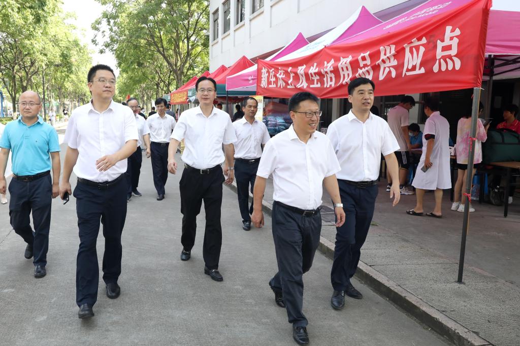 9月4日—5日,校党委书记汪俊昌,校长王建力,校领导沈赤、张宏、柳国庆、柯羽、黄坚、陈均土在党办、校办、学工部、后勤管理处等部门负责人的陪同下,来到南山校区、河西校区和兰亭书法艺术学院等迎新现场,看望2021级新生,慰问迎新工作人员和学生志愿者。