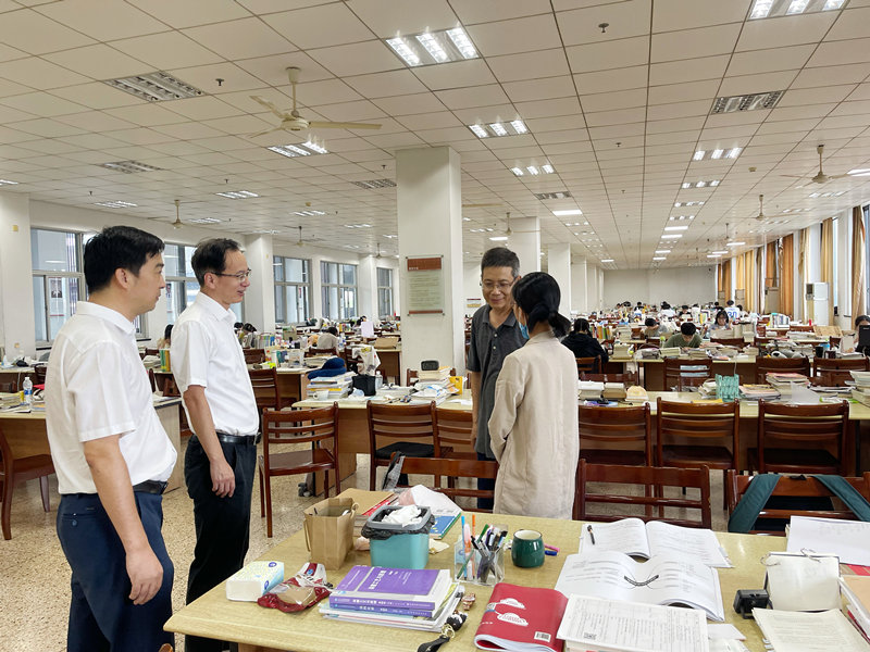 8月9日下午,校长王建力、党委副书记张宏走访看望暑期留校考研复习学生,校长办公室、党委学工部、教务处、图书馆等职能部处负责人和部分二级学院负责人陪同走访。