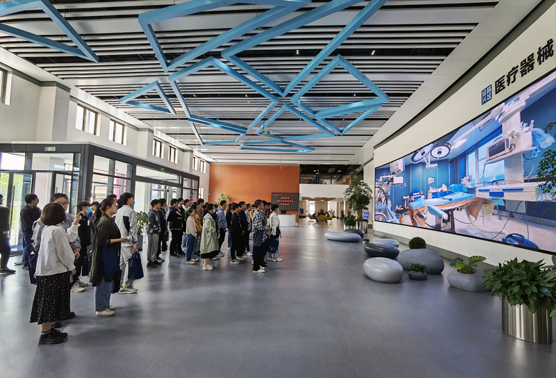 启动仪式结束后,我校师生代表200余人搭乘学校“就业直通车”进“万亩千亿”产业园,参观考察了集成电路小镇、医疗器械产业园区,了解地方产业发展现状和远景规划,直观感受越城产业发展“加速度”。