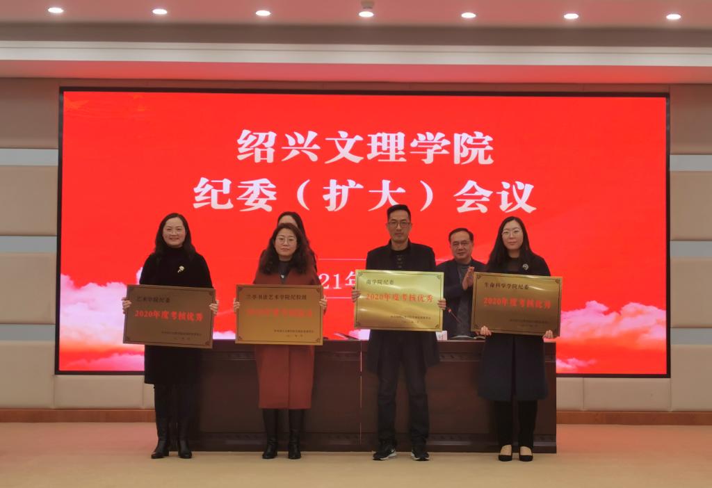 会上还对艺术学院纪委、兰亭书法艺术学院纪检组、商学院纪委、生命科学学院纪委等4个获得2020年度考核优秀等次的二级纪检组织进行了表彰。