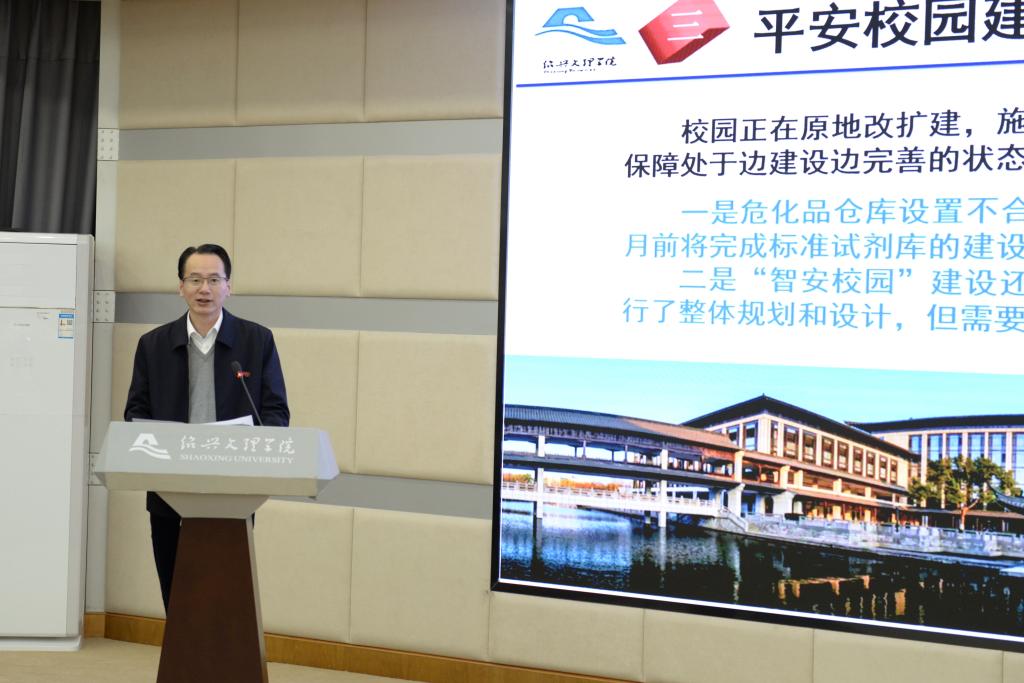 张宏作等级平安校园建设情况汇报,重点从加强组织领导、完善责任体系,重视政治安全、确保校园稳定,严格对标对表、做实基础工作,重视安全教育、提升服务保障,完善机制制度、注重规范管理等五方面汇报了我校平安校园建设的具体做法。他指出,全校上下高度重视安全问题,不断优化工作理念做法,通过持续坚持努力,我校平安校园建设组织领导体系、校园防控体系、预警应急机制、安全服务保障、综合治理水平等都得到进一步提升,学校总体平安稳定。
