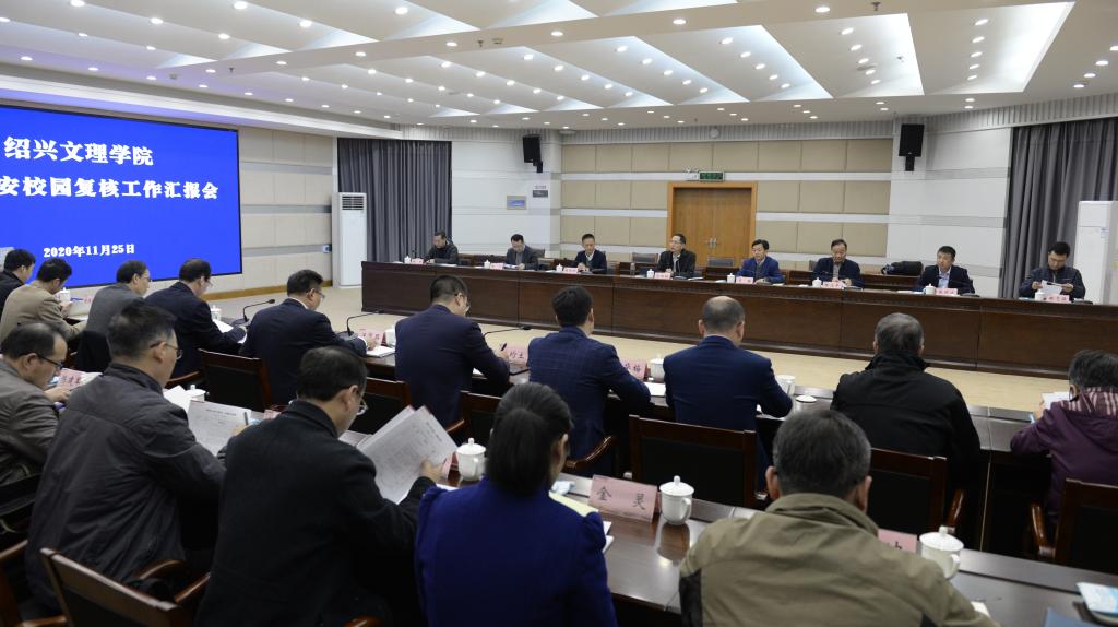 11月25日下午,以浙江工商大学党委委员、副校长方向明为组长的省等级平安校园考评复核专家组一行8人来我校进行等级平安校园考评复核。由方向明、省教育厅校安处四级调研员马骏、浙江工业大学保卫处长张伟锋、浙江工商大学保卫处长缪江平、杭州师范大学实验设备处长赵飞、越秀外国语学院保卫处长张晓波、浙江交通职业技术学院保卫处长胡琦、浙江工商大学保卫处副处长韩志强等组成的专家组,校党委书记汪俊昌,党委副书记张宏,副校长陈均土,校党委委员、组织部部长宣绍龙,绍兴市教育局高教处和绍兴市公安局国保支队负责人,学校相关职能部门和各二级学院主要负责人参加了汇报会和反馈会。