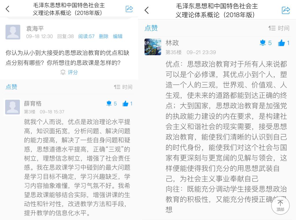 “习近平总书记指出,我国高等教育发展方向要同我国发展的现实目标和未来方向紧密联系在一起,为人民服务,为中国共产党治国理政服务,为巩固和发展中国特色社会主义制度服务,为改革开放和社会主义现代化建设服务。请大家思考一下,你最希望从大学获得什么?”在《马克思主义基本原理概论》第一课上,该校王明亮老师结合《讲义》第四讲,向英语(师范)专业的同学进行了在线课堂提问,学生们拿出手机,利用超星学习通平台将答案发送到屏幕上,与老师共同探讨,“灌输”变为“恳谈”的教学模式增强了师生之间的良好互动。