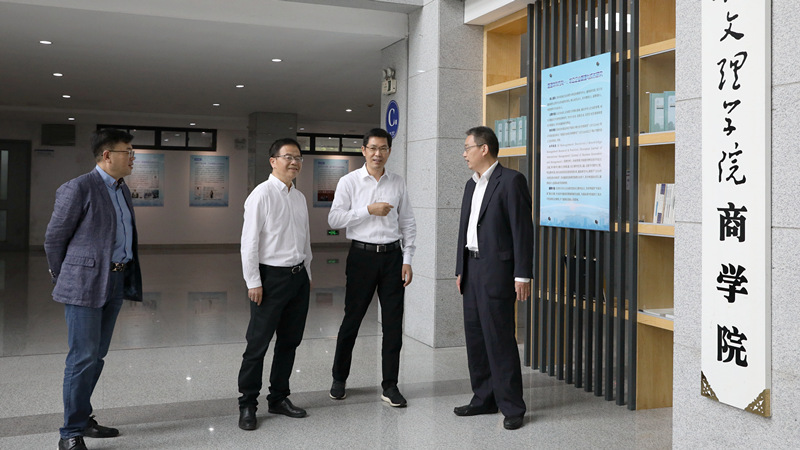 座谈会前,丁如兴一行实地踏看了商学院一楼展陈厅、文化长廊等,听取了相关介绍。
