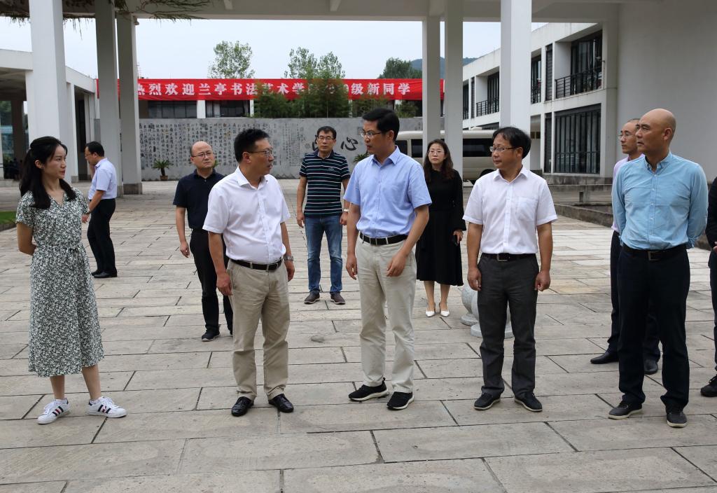 丁如兴一行实地察看了校区教学楼、学生宿舍、专家楼及校区新建教学楼的工程进展情况,座谈听取了“兰亭书法学堂”的建设发展情况,肯定了学院在国内外书法教学和国际化传播中的贡献与作用。他指出,结合现代数字技术和书法教学开展书法普及传播,是一项有效的创新性举措。