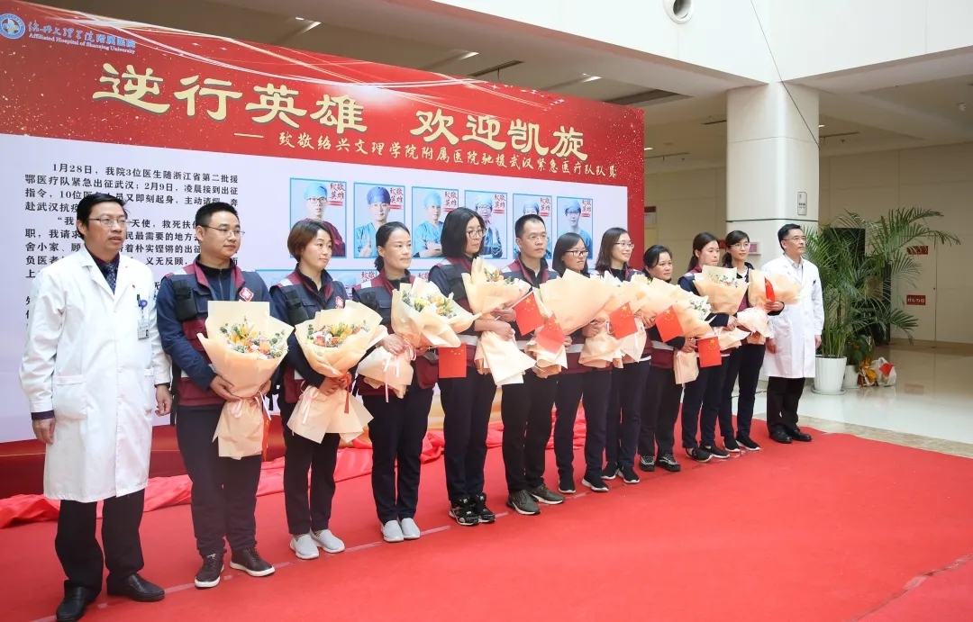 春风作伴英雄归。4月12日上午11点30分,绍兴第三批援鄂医疗队的44名医务人员平安归来,回到家乡绍兴,其中包括我校附属医院第二批10位援鄂医疗队员。为了迎接英雄凯旋,绍兴市举行了隆重的欢迎仪式。市领导陈澄、丁晓燕、顾涛、胡少云和市卫生健康委班子成员等参加。