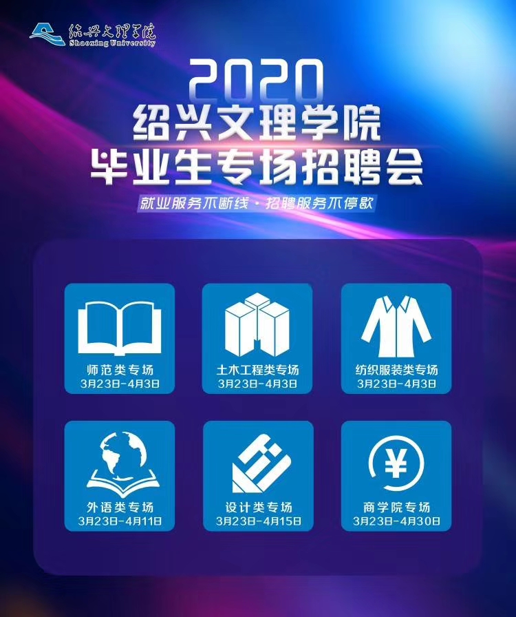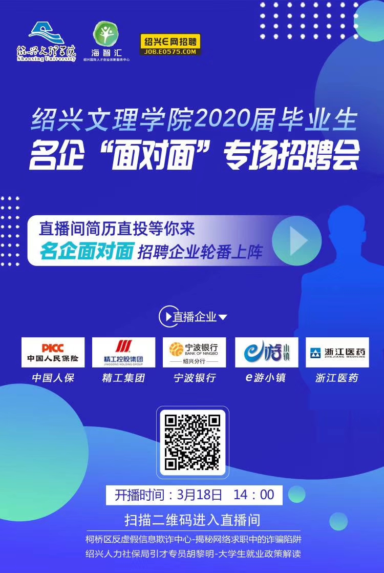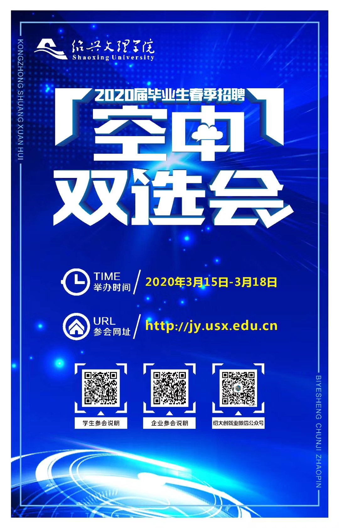 4月6日,王建力校长通过“智联招聘”平台发布视频,向全国企事业单位介绍学校建设发展和冲刺更名“绍兴大学”情况,隆重推荐2020届毕业生。