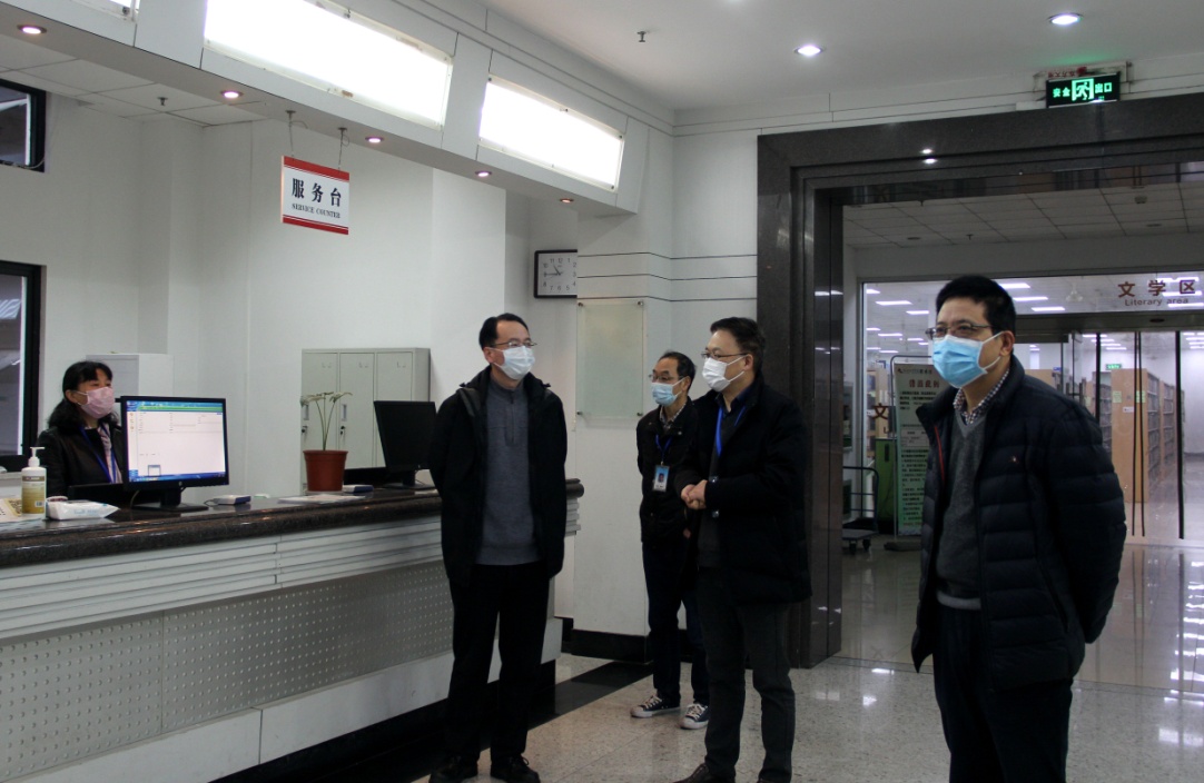 王建力、张宏一行走访了已开放的书库等公共区域,详细了解了图书馆疫情防控措施及人员到位等情况。王建力强调,图书馆作为学校公共文化服务的重要场所,复学后存在人员密集、流动性大、管控难度高的特点,一定要严格按照防疫要求积极主动地做好部署,制定严格的防疫措施,并做好防疫宣传工作。同时,由于学校扩建工程正在进行,图书馆还应做好进出指示引导工作,方便师生进出图书馆。