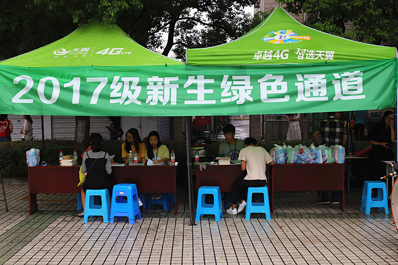 细雨中穿行的志愿者,路口引导交通秩序的警卫,报到站点坚守岗位的老师,以及帮助子女拿着行李奔波的父母,今天的主角——几千名新面孔都是今天亮丽的风景线。