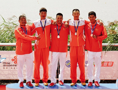 体育学院学生王丛康(右一)获得全运会皮划艇静水1000米四人皮艇亚军