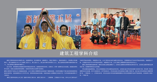 1985年开始培养工业与民用建筑专科生,1999年开始培养土木工程本科生,2015年开始培养建筑与土木工程专业学位研究生。2007年列为校级重点专业,2014年列为浙江省新兴特色专业。近三年《中国大学及学科专业评价报告》中,土木工程专业连续为“四星级”专业,位列全国同类专业前20%,名列浙江省前三。专业立足建筑强市,面向全国培养建筑产业应用型人才,助推建筑产业现代化和住宅产业现代化的科技创新与产业升级。