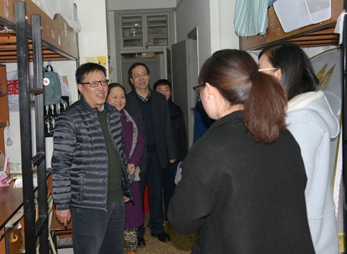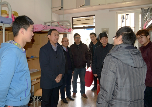 走进阳明书院,校党委书记汪俊昌慰问了医学院的高同学、教师教育学院的朱同学,询问了他们的学习、生活、家庭情况,并送上御寒棉被,鼓励他们珍惜光阴,努力学习,互帮互助,立志成才。汪俊昌说:“学校非常关心你们的成长和发展,如果生活上、学习上有什么困难,及时向老师们反映,我们会全力帮助大家。”