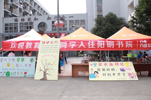 阳明书院的此次迎新以“家”为核心理念,提出“暂别小家,融入大家”的迎新口号。“我们就定一个小目标,先成为一家人吧”,书院精心的设计为新生及家长营造出家的氛围,传递着家的温暖。