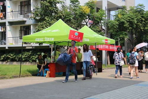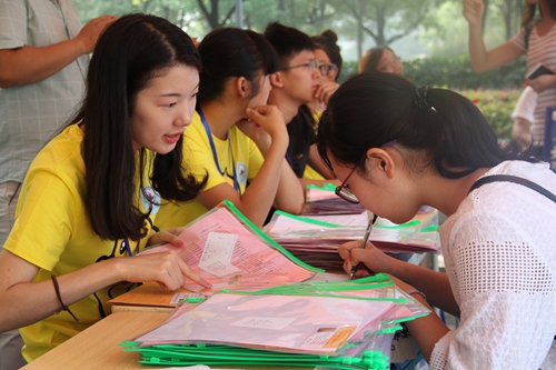 树人书院延续了去年“笑脸迎新”的理念,秉承微笑服务的宗旨,所有书院迎新志愿者身着统一的“小黄鸭”造型的T恤,成为迎新现场一抹亮丽的风景线。