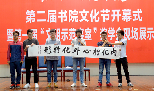 为扎实推进文明寝室创建,深入开展大学生文明修身活动,5月30日晚,校第二届“书院文化节”开幕式暨第一届“文明示范寝室”奖学金现场展示会于铁城科教馆报告厅隆重举行。市教育局高教处领导,我校党委组织部、学工部、保卫处、计财处、校团委负责人,各书院院长、副院长、院务主任、辅导员,获奖学生代表,书院学生代表,公寓管理员代表等400余人参加活动。