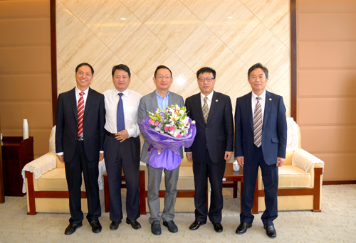 校党委书记汪俊昌与学校老领导孙元钧合影。从左到右依次为沈赤、孙元钧、汪俊昌。
