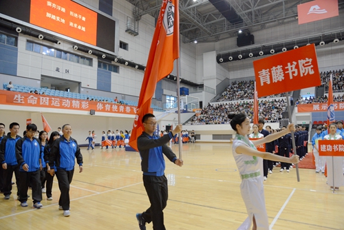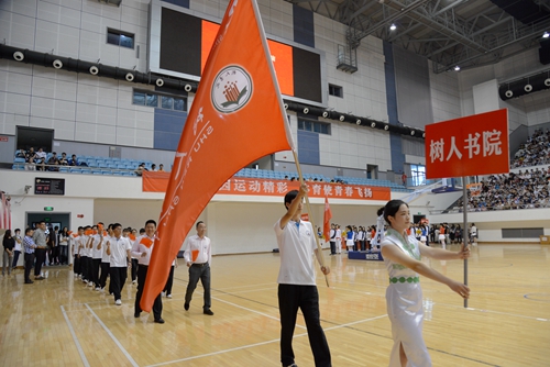 在观看了校党委宣传部为本届运动会创作的专题微电影后,学生代表高举国旗、校旗、会徽,书院、留学生、教职工代表团依次入场。各入场方队极具专业特色和运动精神的展示,以及精心编排的方阵表演赢得观众台上阵阵掌声。今年是我校首次尝试以书院为单位组织参加运动会。入场仪式上,11位书院院长带领着各自书院的运动健儿们,迈着整齐矫健的步伐,喊着铿锵有力的口号,充分展现了书院深厚的文化内涵和当代大学生的青春风采。值得一提的是,今年我校留学生首次组队参赛。在开幕式上,这支由来自美国、墨西哥、韩国等13个国家的留学生组成的代表团引人注目,为此次校运会增光添彩。