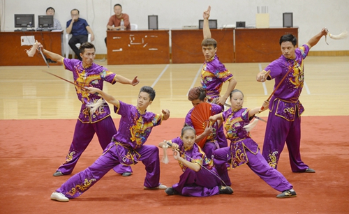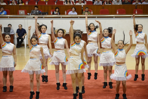 开幕式后,各书院学生代表为到场师生带来了一场异彩纷呈的文体表演,赢得观众台上阵阵热烈的掌声、喝彩声。竞雄书院学生深情演唱《大禹治水歌》,以深沉宏伟的声音撼动全场,之后带来武术《套路表演》,雄壮威武的音乐旋律,震撼人心的一招一式,将中国武术的内在美诠释的淋漓尽致。一枪,一剑,一刀,舞出文理人团结合作,自强不息的精神!“力争第一,是我们的目的……”伴着激情的音乐旋律,竞雄书院再次带来富有动感的群舞表演《我们必胜》。青春是个短暂的梦,由阳明书院、建功书院、仲申书院、文澜书院等带来的歌舞表演《青春修炼手册》,青春激荡,活力四射,感染了在场的每一位师生。舞文理之风采,展水乡之雄威,树人书院、成章书院、羲之书院、东山书院等带来的舞龙舞狮表演《龙腾狮跃》,其跳跃,其舞动,将同学们的目光紧紧抓住,细细品味,沉浸其中。竞雄书院选送的歌舞表演《阳光路上》作为压轴节目,以慷慨激昂的歌声,旋转动人的舞姿,为开幕式画上圆满的句号。