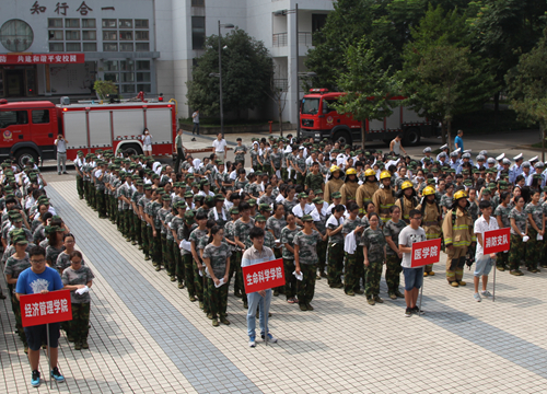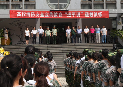 为切实加强我校的消防安全工作,进一步增强师生的灾害风险防范意识,提高自救、互救和逃生技能,提高师生员工应对突发事件处置能力,有效预防灾害事故发生,避免或减少突发事件造成的人员伤亡和财产损失,确保学校教学、科研工作顺利进行。学校联合市消防支队举行了此次消防安全宣传教育“进军训”疏散演练活动。校党委副书记唐和祥,绍兴市消防支队副支队长龚承先,越城区消防大队教导员许常明,学工部、保卫处、党校办、后勤管理处、医学院、经济与管理学院、生命科学学院、教育学院负责人出席本次活动。南山阳明书院军训学生、书院辅导员、校卫队参加本次演练。