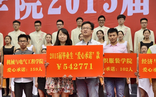 “奉献爱心、践行诚信”,爱心接力18年,“爱心承诺”已经成为我校毕业生离开母校前的一道最亮丽的风景。凝聚着毕业生们对母校、对学弟学妹们的深情厚意,今年又有2155名同学作出了“爱心承诺”,承诺总金额:54万2771元。