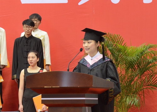 本科毕业生代表,教育学院学前教育111班鲁飞同学发言。她在回顾4年大学生活的收获和精彩后提出了3点建议和大家分享:关于工作与奋斗,要摆正自己的位置,存大志,做小事,先就业后择业,再创业;关于生活与心态,未来要努力工作,但也要认真生活;关于处世与梦想,要在自己岗位上坚持正知正见。