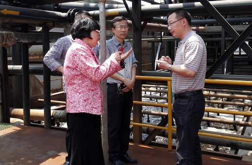 在浙江华东纺织印染有限公司,化学化工学院金阳教授与公司负责人详细探讨公司的污水治理技术,企业负责人听到一些解决方法时,大有“相见恨晚”的感觉。
