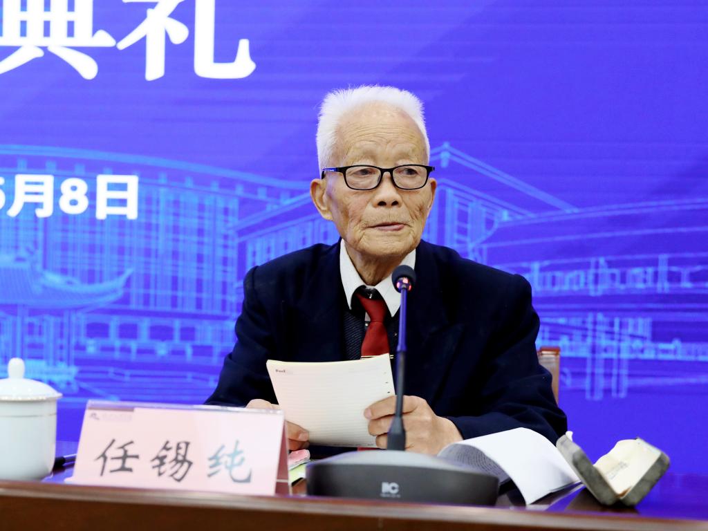 任锡纯为“戎耀之星”奖学金获得者颁发证书。他结合新中国发展历程,讲述了自己的经历,并分享了设立奖学金的初衷,表达了对党、对社会、对学校的真挚之爱和感激之情,为师生上了一堂生动的思政课。他希望同学们始终以习近平新时代中国特色社会主义思想武装头脑,增强“四个意识”,坚定“四个自信”, 做到“两个维护”,铭记历史,学会感恩,砥砺前行。任锡纯于2021年向学校捐赠30万元设立“戎耀之星”奖学金,用以奖励退役的优秀在校学生。