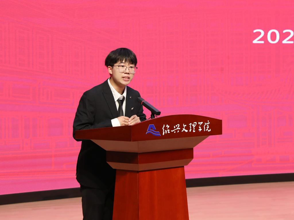获奖学生代表钱衡同学发言。他表示会不忘初心,传承文理修德求真、追求卓越的校园精神,不断前进。