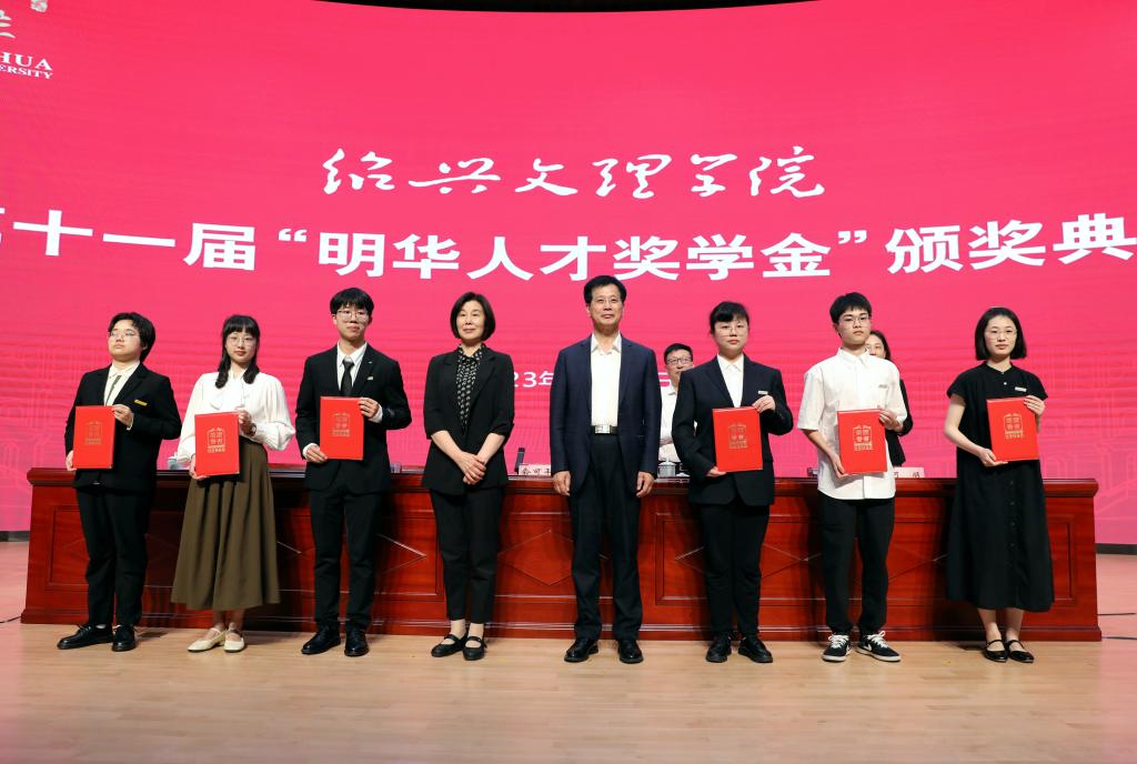 俞可平、徐秀丽为第十一届“明华人才奖学金”6位获奖同学颁奖。外国语学院英语(师范)201班钱衡荣获一等奖,元培学院财务管理1901班王鑫淼、人文学院学院汉语言文学(师范)191班徐依楠荣获二等奖,兰亭书法艺术学院书法学(师范)193班方漾、教师教育学院教育2001班陈悦、马克思主义学院思想政治教育(师范)191班陈晓佳荣获三等奖。