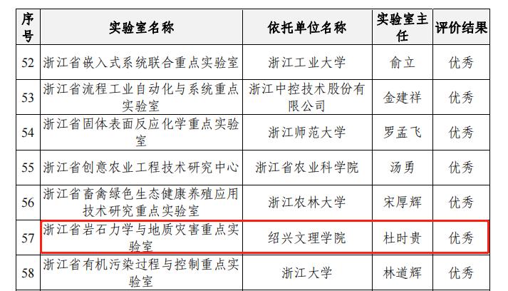 近日,浙江省科学技术厅公布省重点实验室(工程技术研究中心)2019-2021年度绩效评价结果。经过自评、专家评审等程序,我校“浙江省岩石力学与地质灾害重点实验室”绩效评价结果优秀。据悉,全省267家重点实验室和74家工程技术研究中心参加本次绩效考核,优秀率不超过20%。