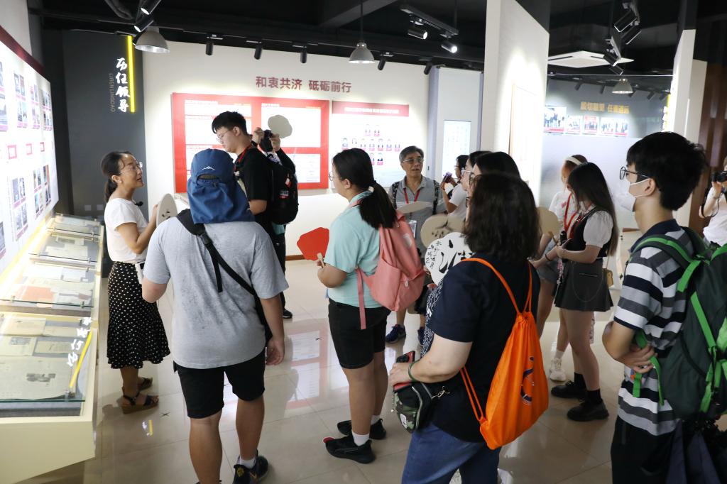 8月8日上午,由香港青少年、香港绍兴柯桥同乡会、香港荃湾葵青区妇女会组成的50余人交流团赴我校开展“共建家国情”交流活动。校党委副书记沈赤、绍兴市委统战部常务副部长黄浙平、绍兴市委统战部港澳台和侨务工作处、校党校办和地方服务与合作处负责人和我校师生代表陪同参观交流。