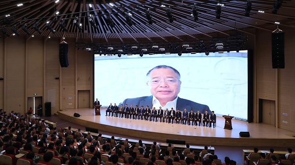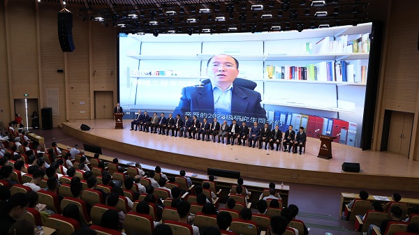 我校杰出校友、中国科学院院士滕皋军教授讲话,他祝贺同学们进入学涯新旅程,希望同学们通过研究生阶段的学习成为新知识的探索者、研究者和创造者,并在探索研究中找到快乐。